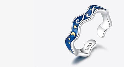 Van Gogh Starry Night Wave 925 Sterling Silver Romantic Rings